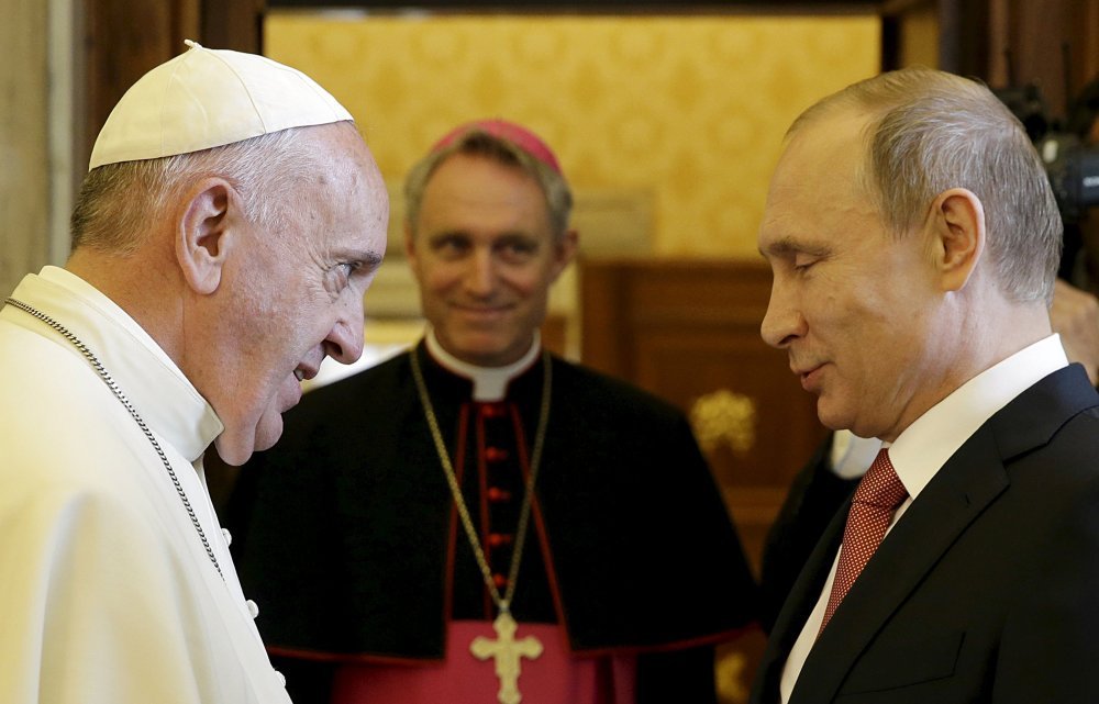 Papa Franjo pozvao je u srijedu ruskog predsjednika Vladimira Putina da uloži 'iskren i velik trud' kako bi se ostvario mir u Ukrajini te mu darovao Anđela mira koji pobjeđuje sve ratove i govori o solidarnosti među narodima