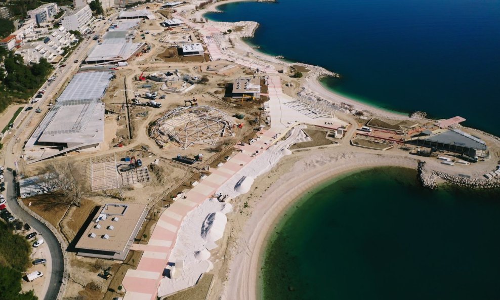 I dalje se radi na uređenju zabavno-rekreacijskog sadržaja, poput dječjih igrališta, cageballa, skate parka i sl. Na dijelovima platoa gdje su radovi završeni, sada je u tijeku razastiranje zemljanog materijala kao priprema za sadnju planiranog zelenila, kao i uređenje plaže do same grede šetnice', navodi se u priopćenju.