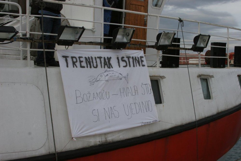 S motom Trenutak istine, u Puli je prosvjedovalo 300 ribara s 30 brodova, dok se na umaškom prosvjedu okupilo još stotinjak ribara. Kao osnovni zahtjev, kako nam veli Daniele Kolec ispred udruge Mare Croaticum i Radovan Simić u ime udruge Istarski ribar koje su u koordinaciji s udrugom Naše more organizatori ribarskih prosvjeda u devet jadranskih gradova, traže smjenu državnog tajnika Tončija Božanića