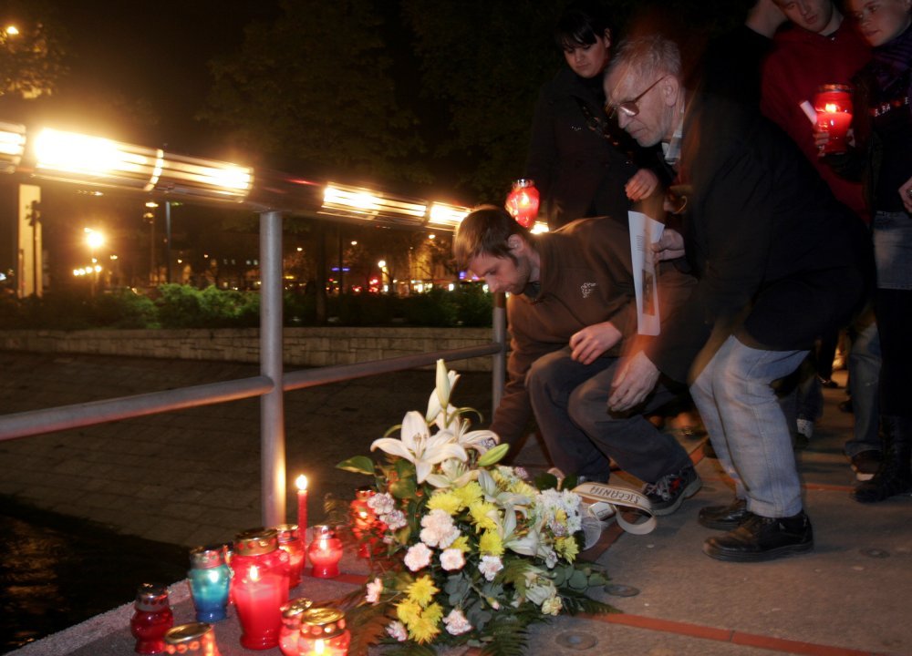 Kolona od petstotinjak ljudi s upaljenim svijećama prekinula je nakratko njihova bezbrižna mladenačka čavrljanja. Došli su s Trga Sv. Barbare gdje su se okupili da bi se prisjetili 23-godišnjeg studenta Aleksandara Abramova, kojeg su prije četiri mjeseca trojica mladića do smrti pretukla. Uza zid gdje je preminuo, ispod njegove slike, položili su svijeće te mirno i dostojanstveno krenuli preko Korza do mjesta još jedne tragedije.