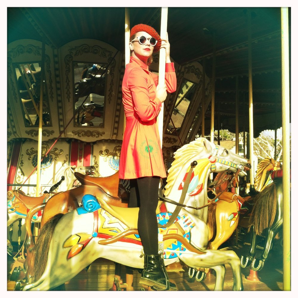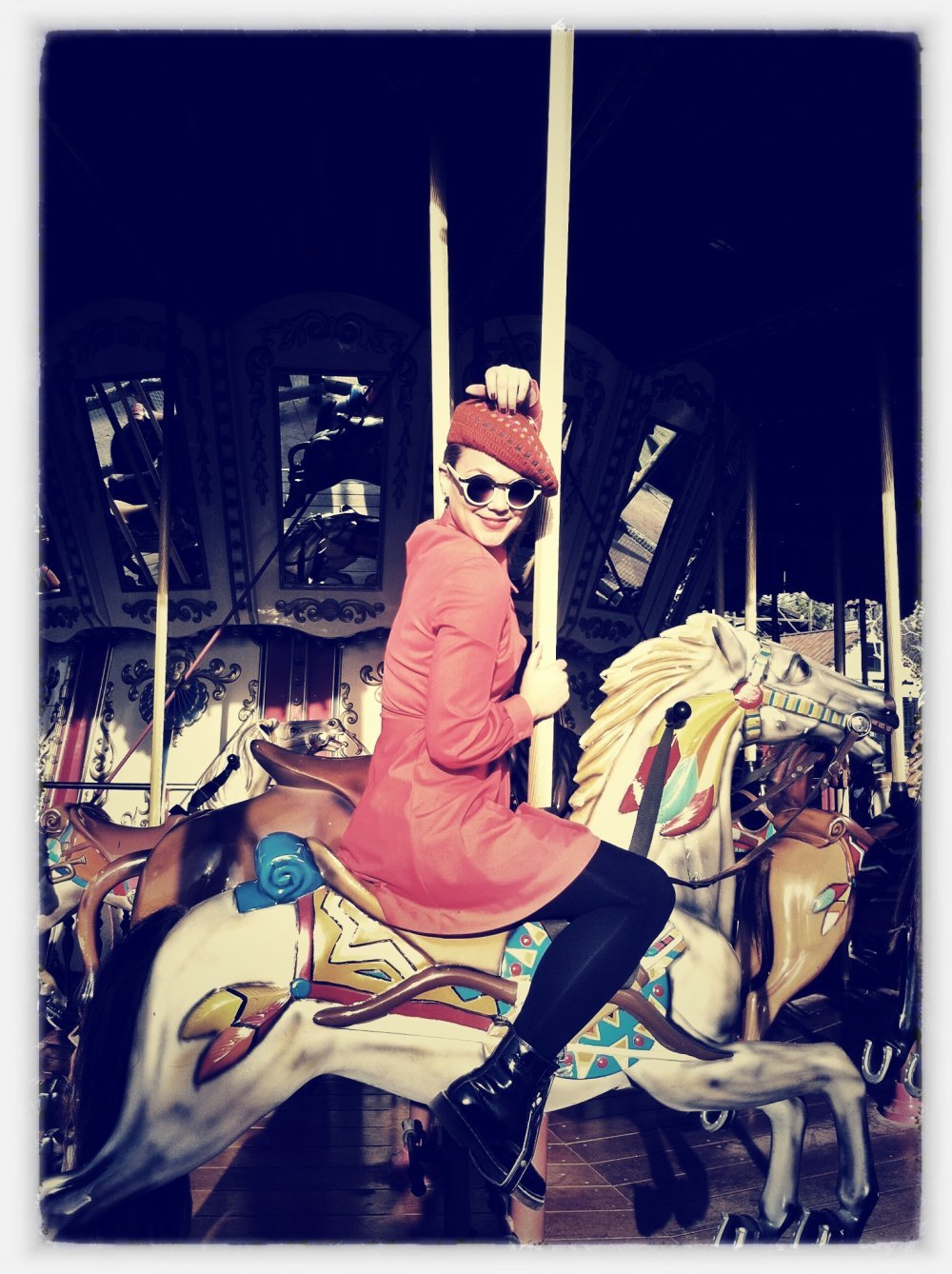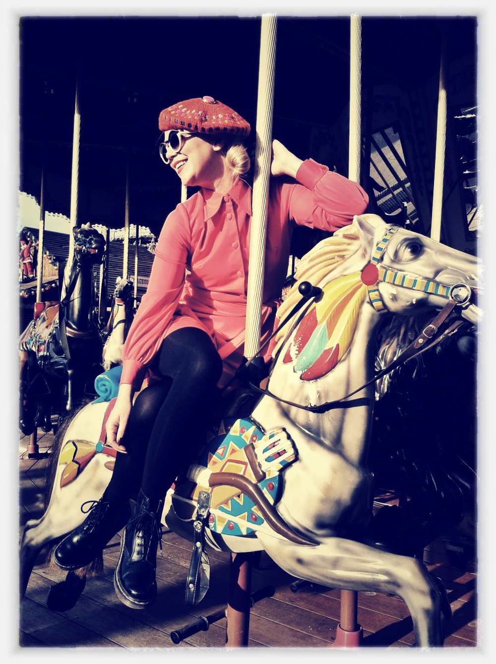 Ovu kričavu haljinu od poliestera (to joj je najveća mana, zato je rijetko i nosim) kupila sam na odličnom milanskom buvljaku prije šest godina za samo pet eura. Iako boje nisu identične, kombinirala sam je s predivnom heklanom beretkom, ručnim radom Ružice Jovičević, mlade dizajnerice iz Splita o kojoj sam nedavno pisala. Sve sam umirila gustim crnim čarapama i crnim lakiranim martensicama. A kombinaciji sam dodala na random izabrana dva detalja iz prošlogodišnje H&M-ove kolekcije: naočale i ruksak.