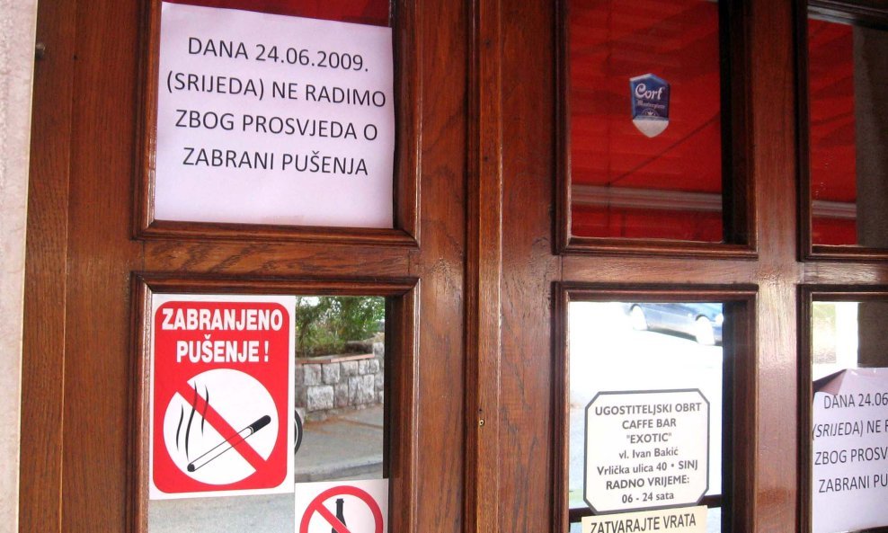 Ugostitelji Sinja, Trilja, Hrvaca i Otoka u srijedu su zatvorili svoje kafiće u znak prosvjeda protiv zabrane pušenja u ugostiteljskim objektima