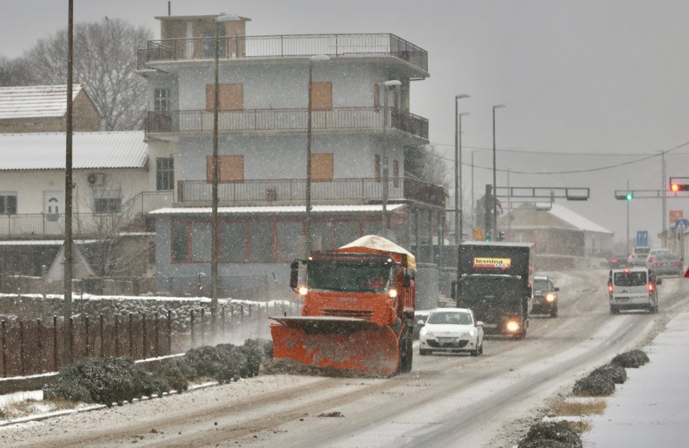 "Jutros od 8 sati snijeg nekoliko centimetara debljine prekrio je cijelu Dalmatinsku zagoru sve do jadranske magistrale te je na terenu angažirano 30 ekipa koje ralicama uklanjaju snijeg s prometnica a iz kamiona se posipa sol," rekao je Hini Petar Vuletić, voditelj Zimske službe u Županijskim cestama.