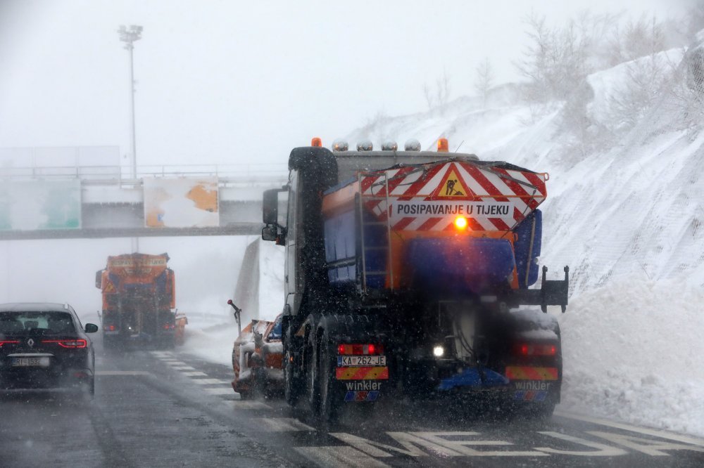 Snijeg pada mjestimice u Lici i Gorskom kotaru. Zbog zimskih uvjeta zabrana je prometa za kamione s prikolicama i tegljače s poluprikolicama te vozila bez propisne zimske opreme na pojedinim cestama u Lici i Gorskom kotaru. Zbog olujnog vjetra ograničenja su za pojedine skupine vozila u priobalju