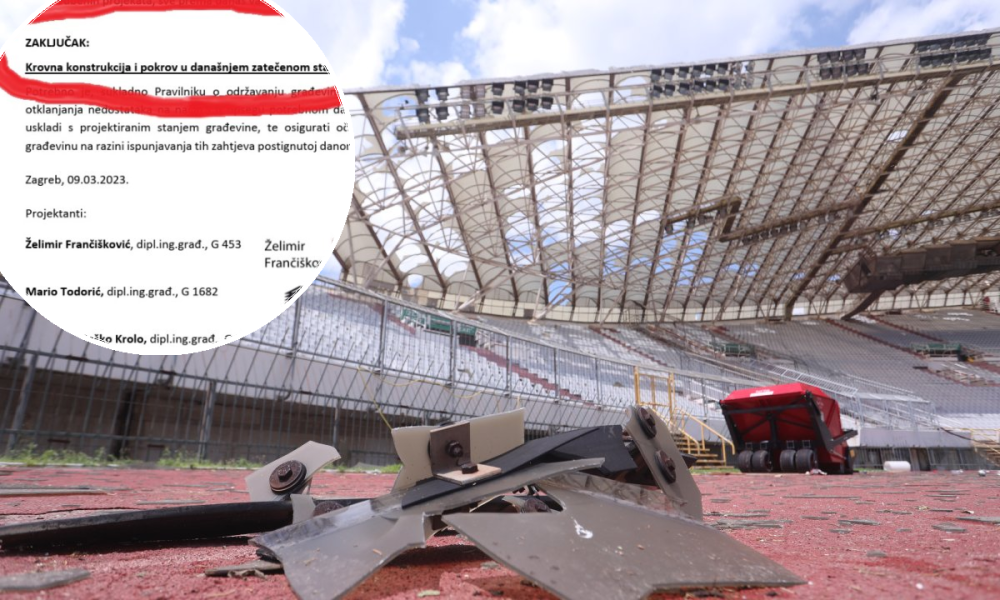 'Krovna konstrukcija i pokrov u današnjem zatečenom stanju nemaju propisanu sigurnost', stoji masnim slovima podcrtano u 'posebnom očitovanju' koje su potpisali inženjeri Želimir Frančišković, Mario Todorić, Joško Krolo i Milan Crnogorac te dostavili Hajduku, ali – još važnije – i Gradu Splitu kao vlasniku stadiona.