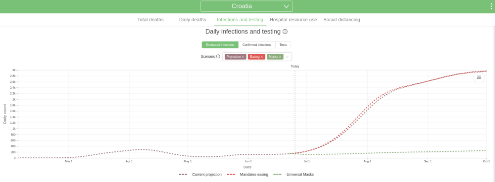 Institut za metriku i procjene u zdravstvu (IHME) sa Sveučilišta Washington u Seattleu izašao je s novim prognozama za Hrvatsku