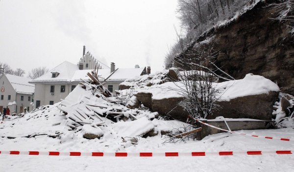 Oko 250 policajaca i spasilaca s psima tragačima došlo je u Stein an der Traun, jugoistočno od Muenchena, nakon što je stijena uništila kuću u ponedjeljak navečer.