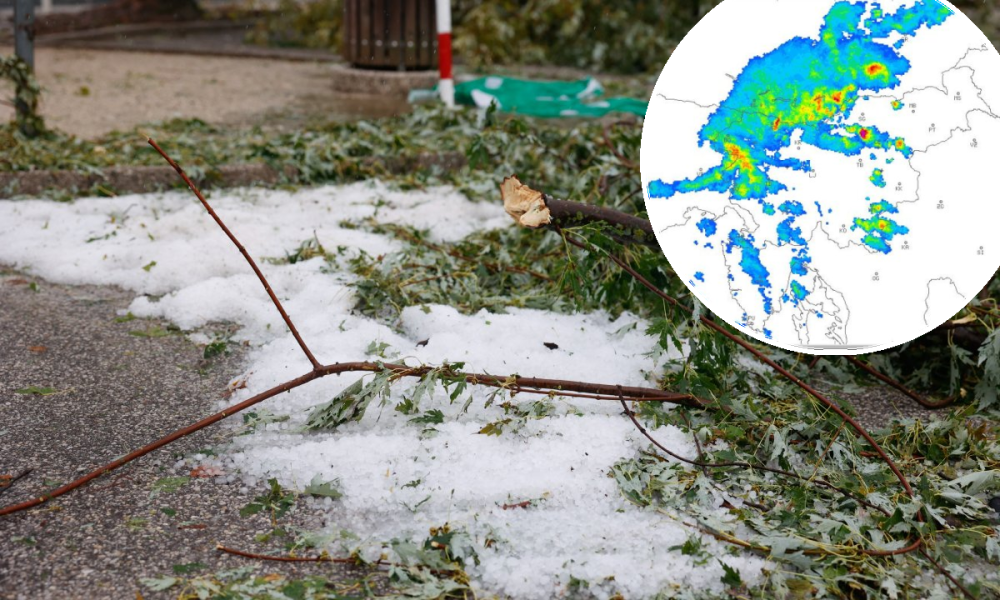 Snimke objavljene na toj stranici iz Velenja, grada nešto sjevernije od Celja prema austrijskoj granici, otkrivaju da se tuča već istresla nad tim krajem.