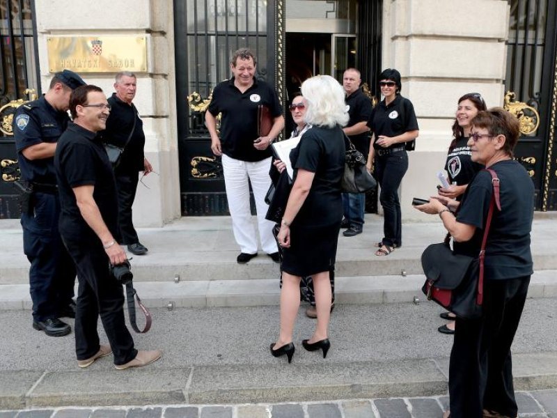 Predstavnici Stožera za obranu hrvatskog Vukovara došli su u Sabor pratiti raspravu koja će odrediti sudbinu njihovog prijedloga da se raspiše referendum o dvojezičnosti. Kada su ušli u Sabor, natjerani su da okrenu svoje majice naopačke ili da ostanu vani...