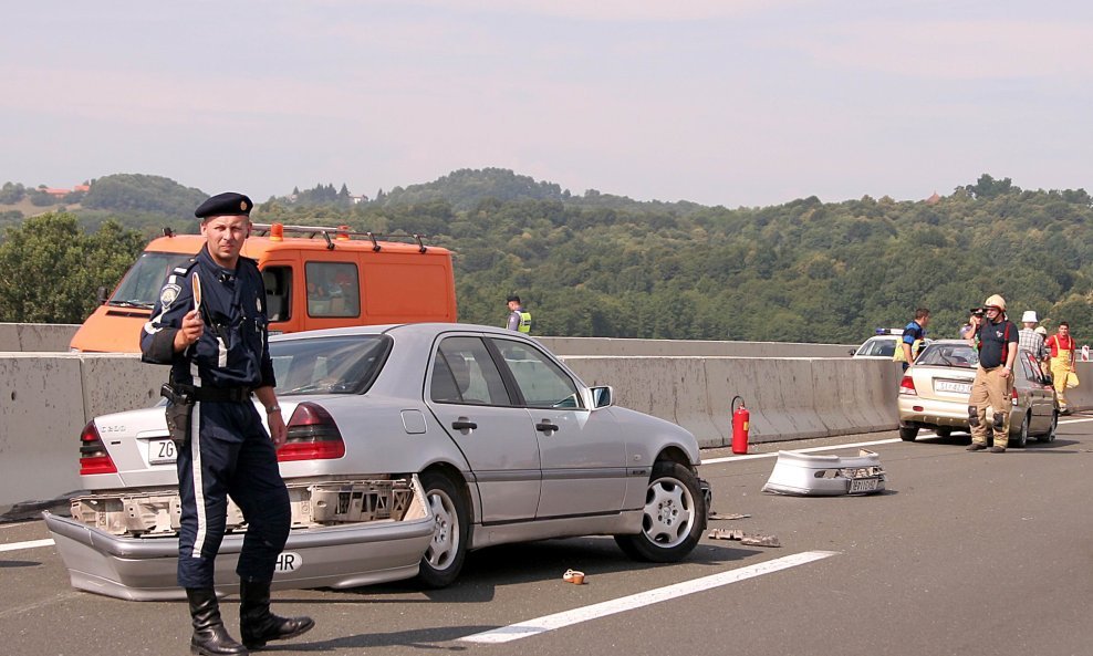 Na vijaduktu Drežniku, na 41. kilometru autoceste Rijeka - Zagreb, samo kilometar nakon naplate Karlovac u smjeru Rijeke, dogodila se jutros bizarna, ali i stravična prometna nesreća. Prema pisanju Jutarnjeg lista, vozač Mercedesa zagrebačkih registracijskih oznaka stao je na pretjecajnoj traci autoceste, prema prvoj informaciji, da bi promijenio stražnju lijevu gumu. U tom trenutku na njega je naletio Hyundai šibenskih registracija