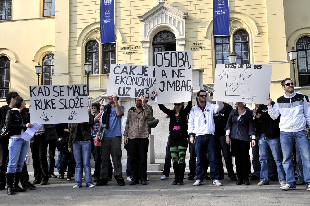 Studenti prava krenuli su popodne u mirnoj povorci s Trga maršala Tita prema Filozofskom fakultetu. Na potporu prosvjednicima odlučili su se, kažu, jer plaćaju izuzetno visoke školarine za koje najmanje dobivaju. Posebno ističu problem izvanrednih studenata koji na pravu plaćaju "bezobraznih 8000 kuna", a nemaju redovita predavanja, subvencioniranu prehranu, niti besplatan prijevoz.