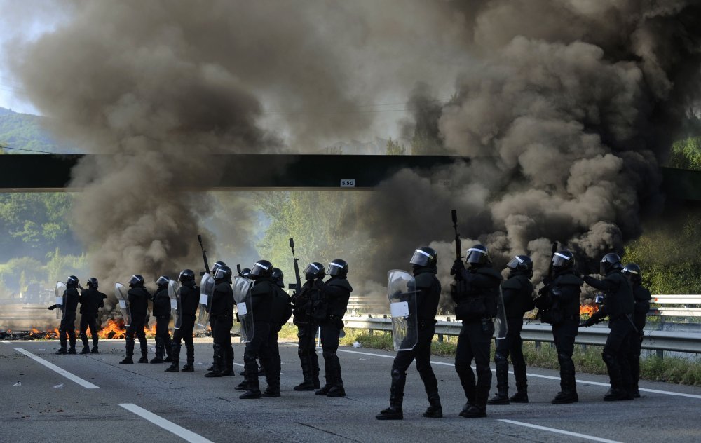 Policija je pokušala ukloniti zapaljene gume, koje su rudari postavili kako bi blokirali ceste. Na policijske gumene metke i plin, štrajkači su odgovorili ručno pravljenim zoljama i praćkama, prenosi Klix.ba.