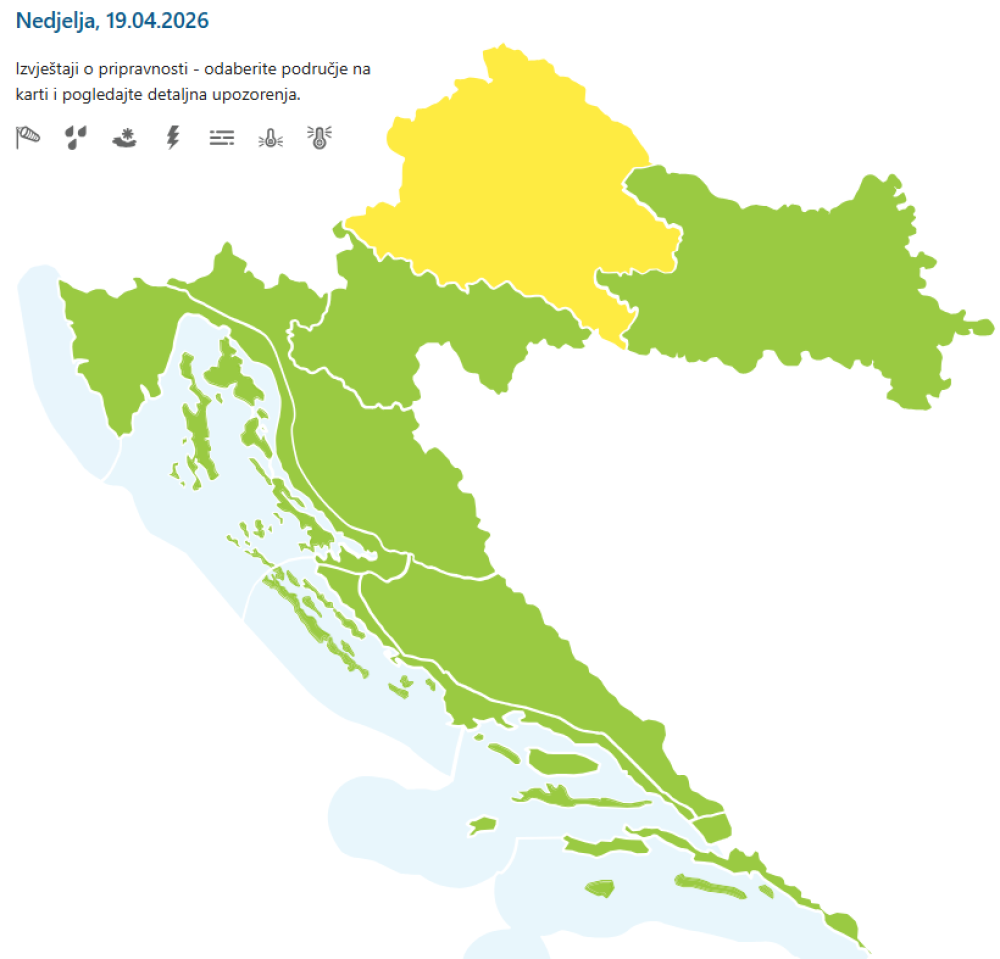 Za Zagrebačku regiju zbog pljuskova je upaljen i žuti meteoalarm.
