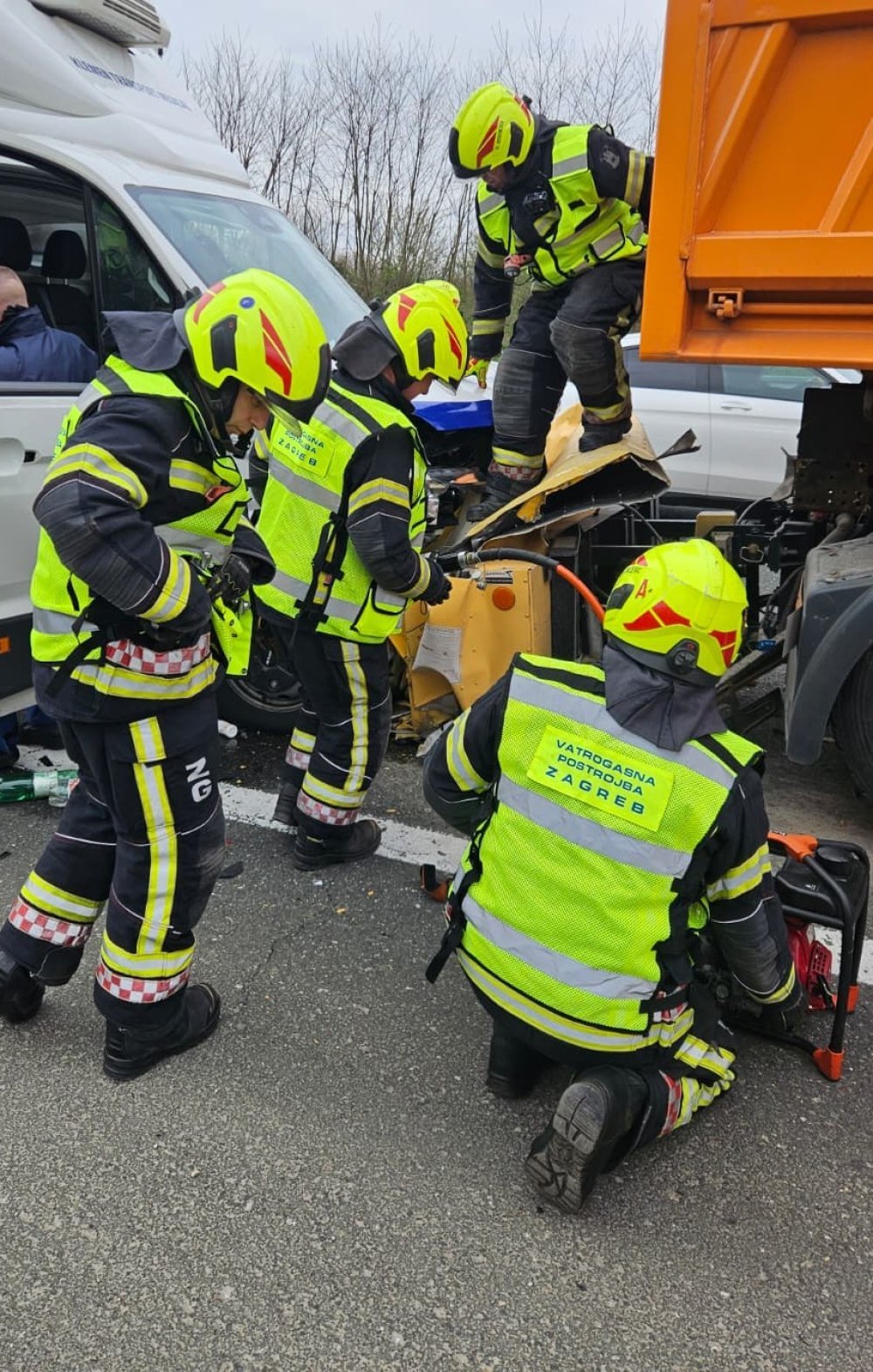 U nesreći su sudjelovala tri teretna vozila, a na teren su izašli i vatrogasci Javne vatrogasne postrojbe Zagreb koji su iz jednog kamiona izvukli ozlijeđenu osobu.