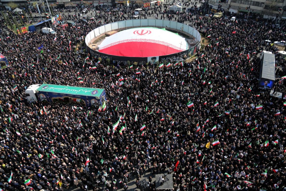 Povorka s lijesovima kretala se kroz Trg revolucije u Teheranu, okružena ožalošćenima. Mnogi su nosili fotografije bivšeg i sadašnjeg vrhovnog vođe, dok su pojedini okupljeni slali oštre poruke protiv SAD-a i Izraela.