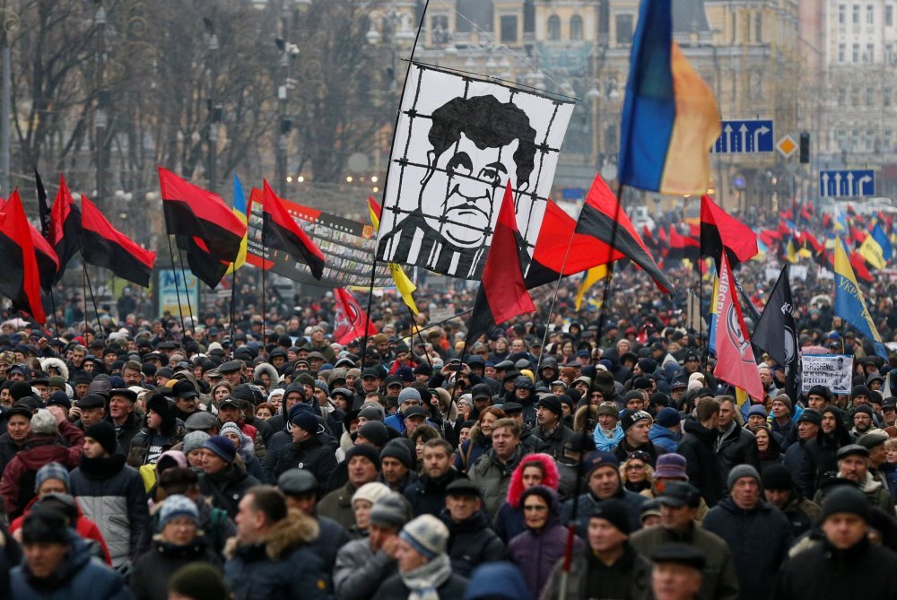 Prosvjednici su u povorci prošetali ulicama noseći transparente sa sloganima protiv vlade i protiv korupcije te crteže na kojima je Porošenko prikazan iza rešetaka, izvijestio je France Presse.