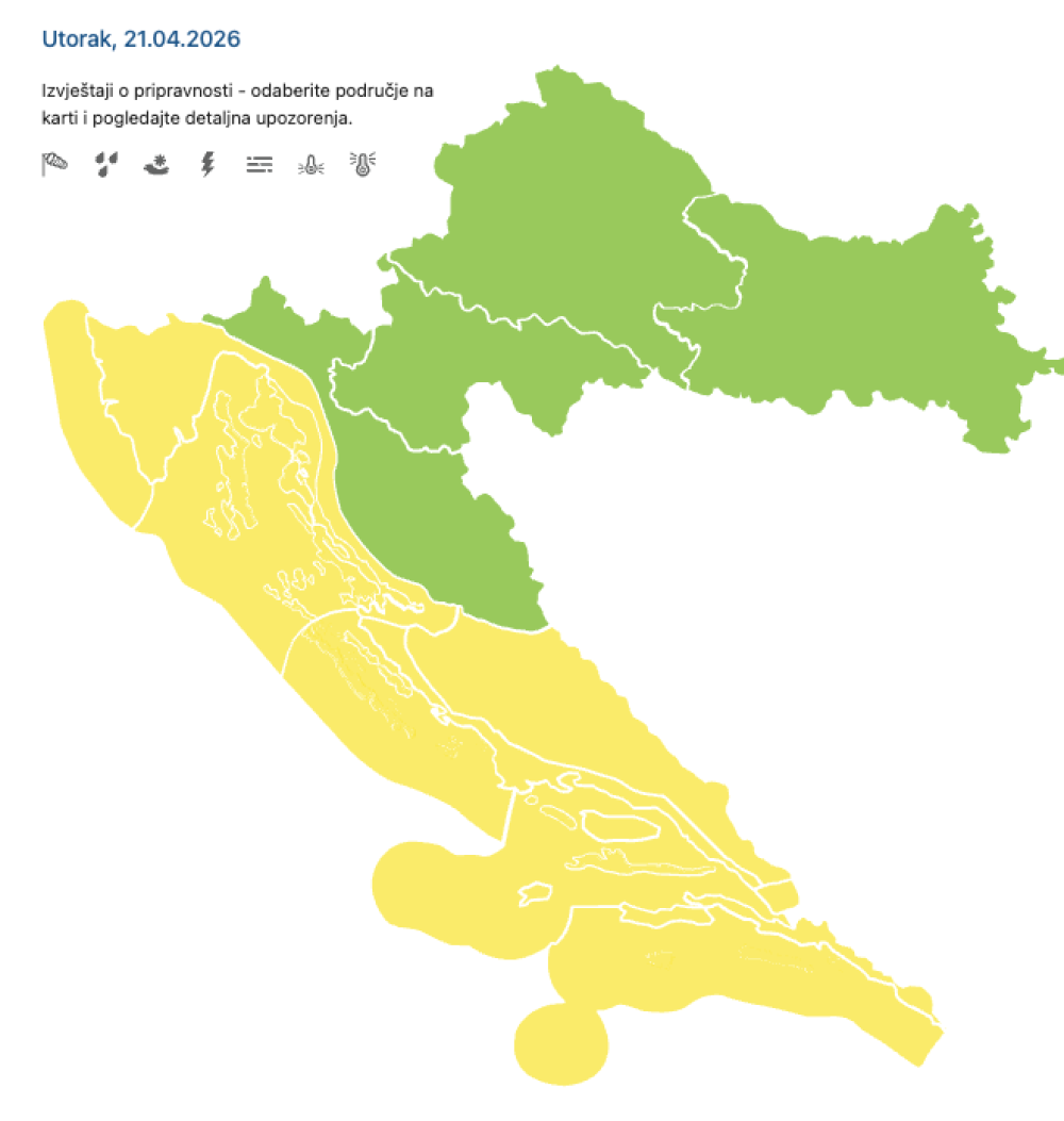 Utorak donosi pravo proljetno šarenilo - od sunca do pljuskova, a ponegdje i grmljavine. Kiša će se pojavljivati mjestimice, s tim da se u južnim krajevima očekuju izraženiji pljuskovi. Na sjevernom Jadranu pritom treba računati i na jaku buru, koja lokalno može imati olujne udare