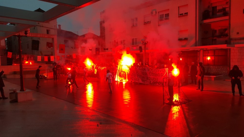Preko stotinu najaktivnijih pripadnika splitske navijačke skupine na metkovskom glavnom gradskom trgu poručilo je da očekuju 'djela, a ne riječi'. Bilo je dosta jakih poruka - od one da 'odijela i značke brane malverzacije i pljačke' do objašnjenja da u Hrvatskom nogometnom savezu 'bandu istih ljudi hrani isti lopov'.