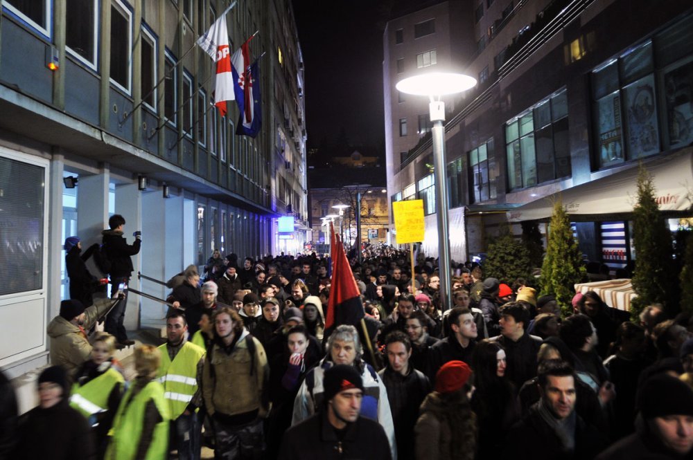 The protesters stopped in front of the offices of the ruling HDZ party as well as the opposition SDP and HNS parties, and in front of the homes of Parliament Deputy Speaker Vladimir Seks, Interior Minister Tomislav Karamarko, and Transport Minister Bozidar Kalmeta, shouting "thieves" and "resignation".
