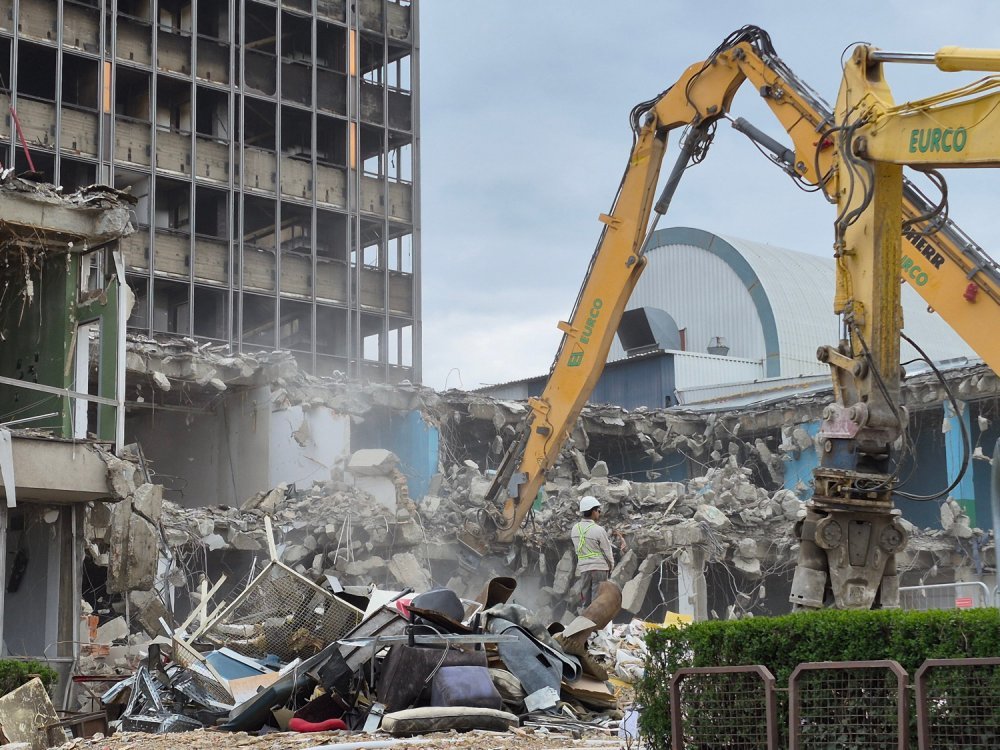 Istodobno, na terenu su u tijeku ograničeni radovi. Zbog prisutnosti azbesta dopušteno je tek rušenje zapadnog aneksa i čišćenje objekta do 16. kata, dok će se daljnji zahvati moći provoditi tek nakon uklanjanja opasnog materijala.