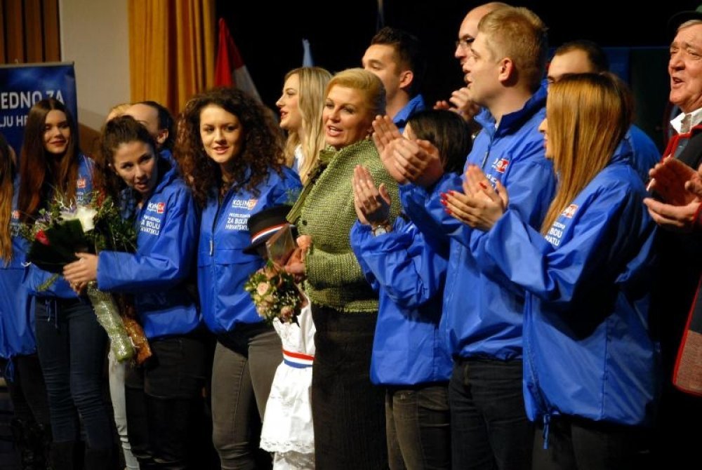 Na predizbornom skupu predsjedničku kandidatkinju Kolindu Grabar-Kitarović poduprli su vinkovački gradonačelnik Mladen Karlić, vukovarsko-srijemski župan Božo Galić te politički tajnik HDZ-a Tomislav Čuljak.