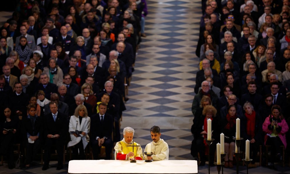 U pariškoj katedrali Notre Dame, koja je ponovno otvorena u subotu, u nedjelju je služena prva sveta misa od požara u travnju 2019. u kojem je katedrala bila uništena.
