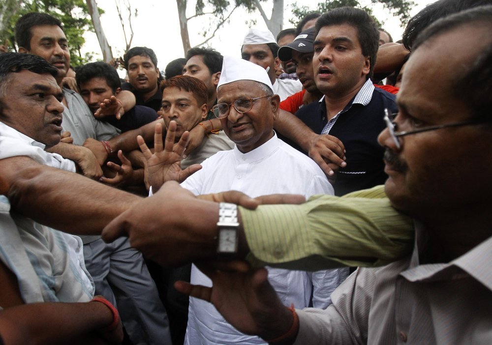 Po ministrovim riječima, uhićene osobe nisu se pridržavale uputa policije u vezi s organiziranjem skupova potpore aktivistu Anni Hazareu. Upute su se ticale broja osoba koje se mogu okupiti u parku, a koji ne smije biti veći od 5.000.