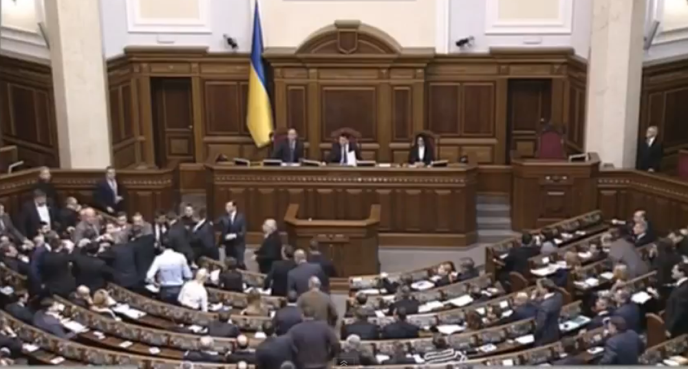 'Ne, ne, ne, stanite, stanite! Prekinite, poštovane kolege, prekinite i molim vas da se vratite na vaša mjesta', ponavljao je predsjednik parlamenta Vladimir Grosman, bliski suradnik predsjednika Ukrajine Petra Porošenka.