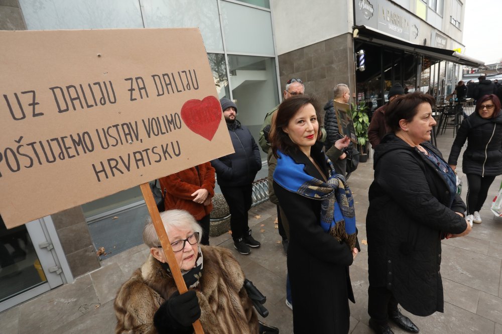 Ultradesičari prosvjedovali ispred stana Dalije Orešković, ona izašla pred njih