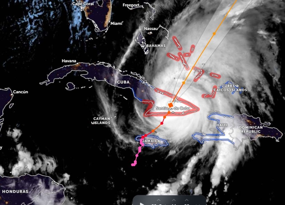 Sa vjetrovima brzine 168 km/h, uragan Melissa je pao na kategoriju broj dva, javlja NBC. Trenutno se nalazi na malo više od 72 kilometara sjeverozapadno od Guantama i kreće se prema sjeveroistoku od Kube brzinom od 22 km/h.
