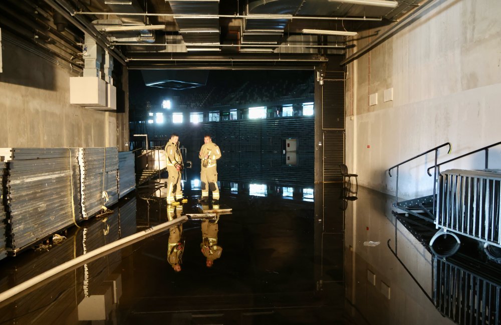 Osim vatrogasaca koji ispumpavaju vodu, na čišćenju prostora Arene angažirano je dvadesetak radnika splitske Čistoće sa sedam vozila za čišćenje.