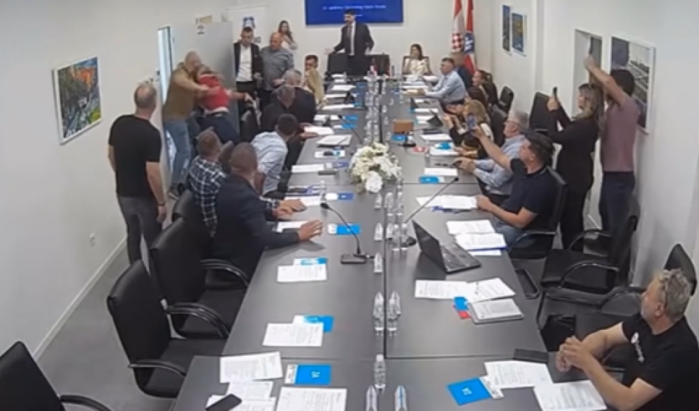 Nesvakidašnje scene zabilježene su u utorak u Grudama, gdje je zastupnik u Skupštini Zapadnohercegovačkog kantona Tomislav Bandić pokušao prisustvovati sjednici Općinskog vijeća, no njegov dolazak prerastao je u incident sa zaštitarima.