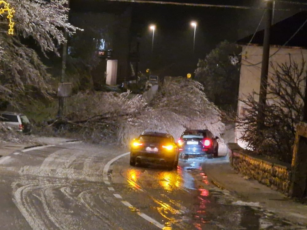 Na više lokacija srušena su stabla, a na cestama se zadržao sloj leda, debeo oko pet do šest centimetara, što u kombinaciji s jakim vjetrom i kišom znatno otežava kretanje, piše Jutarnji list.