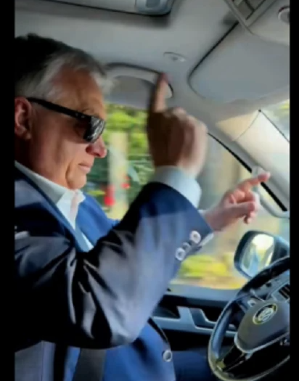 'Idemo jako! Takva je situacija!' čuje se Orbán na snimci, a potom stavlja sunčane naočale, podiže kažiprst i uz zvuke pjesme 'Kizöldült a magyar vidék, tavasz van' nastavlja vožnju. U jednom trenutku sada već bivši mađarski premijer diže obje ruke s volana, a to je bio razlog da ga netko prijavi policiji, piše Blikk.