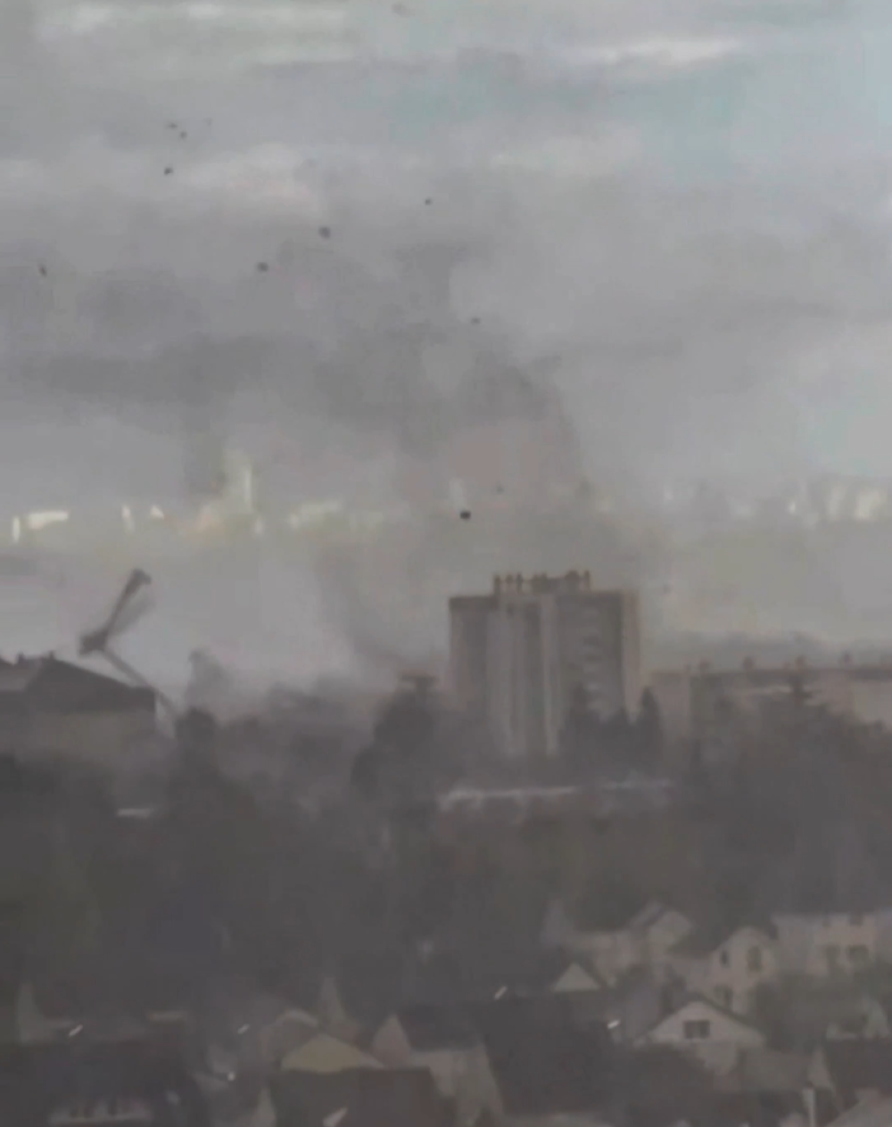 Lokalna vremenska aplikacija Météo Express objavila je snimku na kojoj se vidi kako tornado ruši tri dizalice.