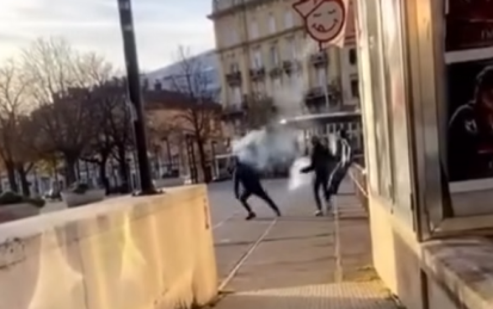 Na početku okupljanja sudionika prosvjednog marša na Jadranskom trgu u središtu Rijeke, došlo je tridesetak mlađih osoba, u većini maskiranih lica. Skandirali su razne povike, ponašali se agresivno i verbalno napadali sudionike skupa. Bacali su i petarde među građane. Policija ih je potisnula u pravcu Ciottine ulice.