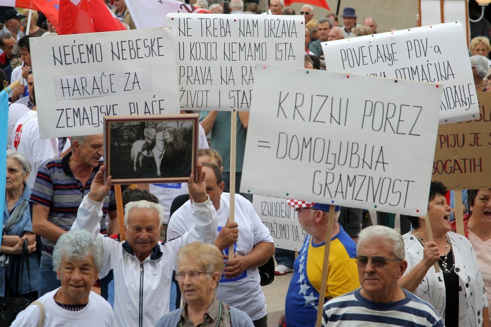 Na prosvjedu su se obratili i predstavnici Sindikata i Matice umirovljenika Hrvatske.