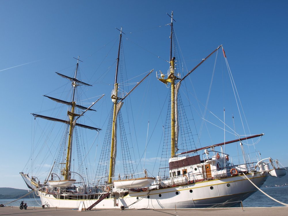 Školski brod Jadran Hrvatska smatra svojom imovinom, matična luka mu je Split, ali se početkom Domovinskog rata našao na remontu u Crnoj Gori i otad ga tamošnje vlasti odbijaju vratiti.
