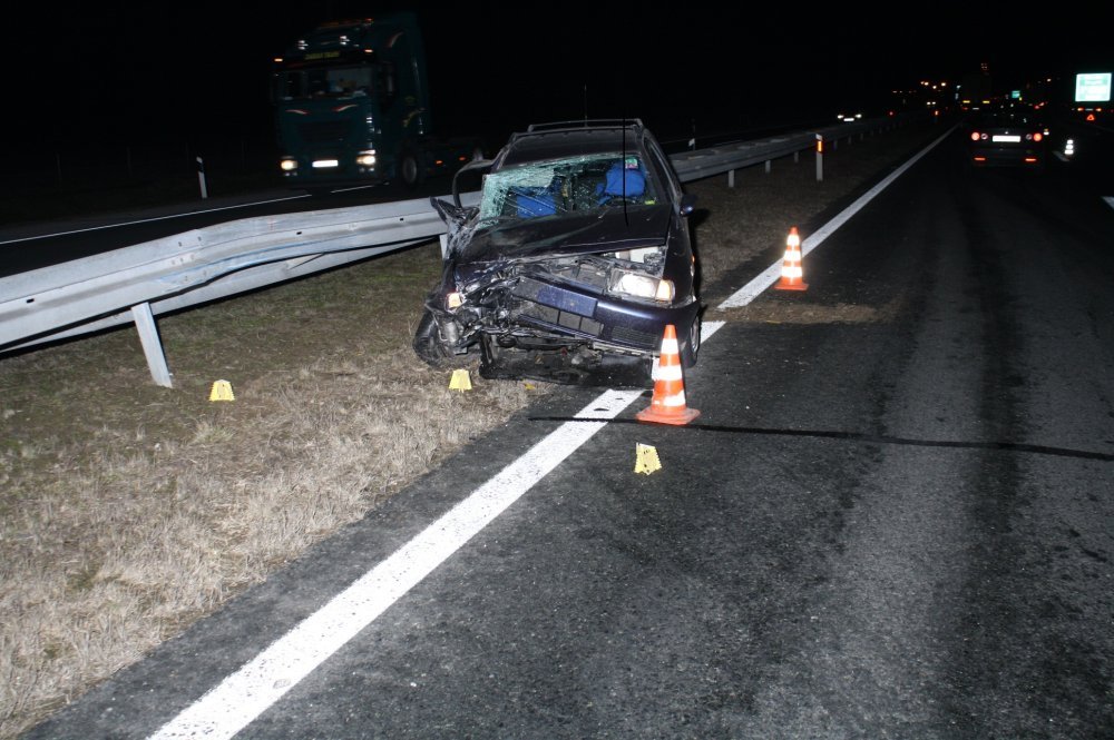 Zbog neodržavanja potrebnog razmaka 51-godišnji vozač VW Pola zabio se u stražnji dio poluprikolice tegljača koji se kretao ispred njega. Uslijed udara, Polo je u nekontroliranom kretanju sletio s kolnika, udarivši u središnju metalnu ogradu. Teško ozlijeđeni vozač uspio je izaći iz smrskanog automobila, no tada je krenuo pješice preko autoceste.