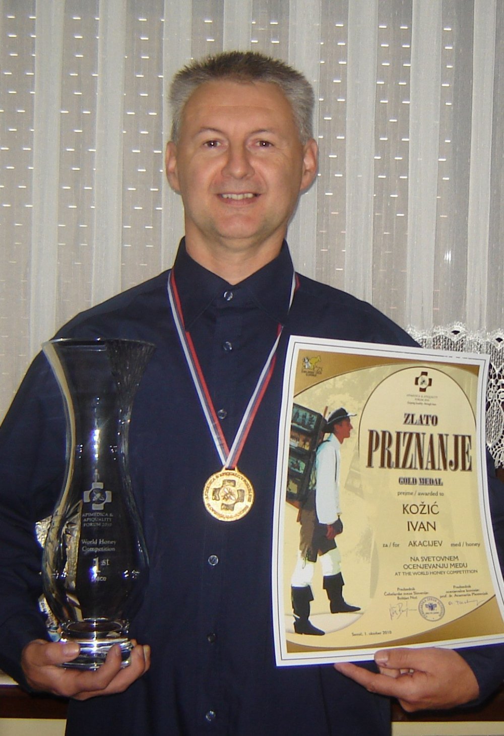 Svjetski šampion pčelar Ivan Kožić iz Konjščine i njegove pčele napravili su med od bagrema koji je apsolutni pobjednik natjecanja u kojem su sudjelovali kandidati iz 14 država sa 336 uzoraka, a desetina svih uzoraka došlo je iz Hrvatske.