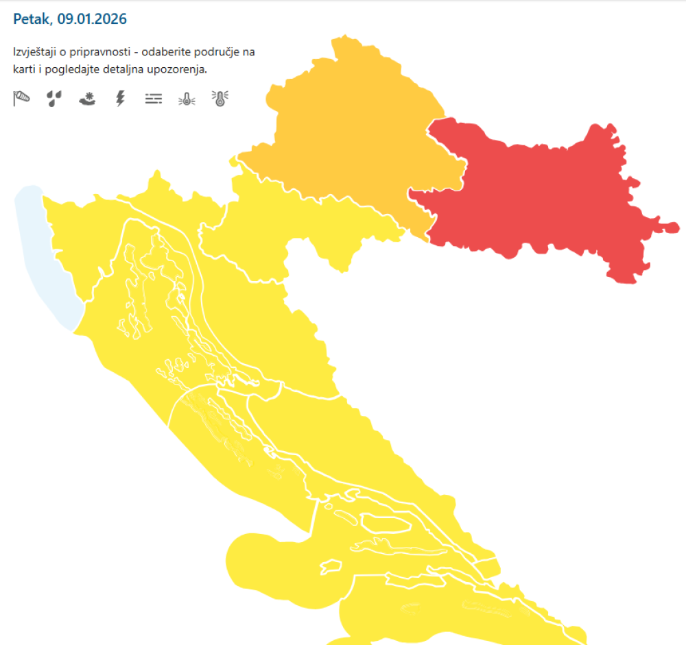 Dok se dobar dio kopnene Hrvatske danas bori s debelim minusima, iz DHMZ-a stiže novo upozorenje - petak donosi izuzetno opasno vrijeme!