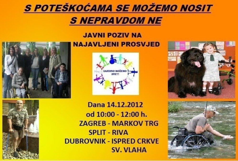 Znate li koliko je roditelju teško 'prositi' novac za liječenje svog djeteta? Naša djeca ovise o donacijama i humanitarnim akcijama i zato smo tome odlučili reći: 'Dosta!' Ne tražimo luksuz, nego samo ono najosnovnije za nas i našu djecu. Želimo da i oni imaju mogućnost uključivanja u zajednicu na kraju tu i pripadaju', zaključuju u pozivu na prosvjed koji će se održati 14. prosinca od 10 do 12 sati.