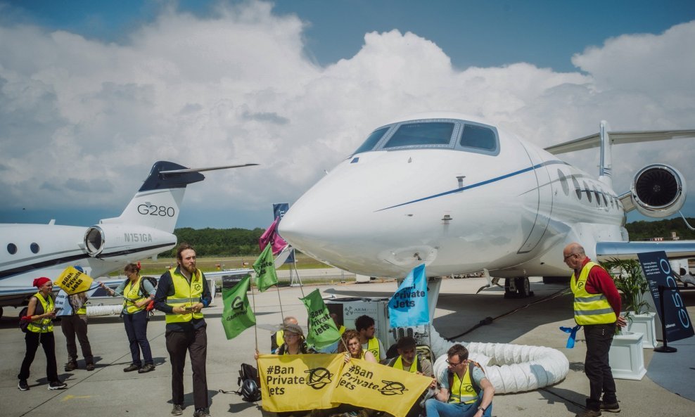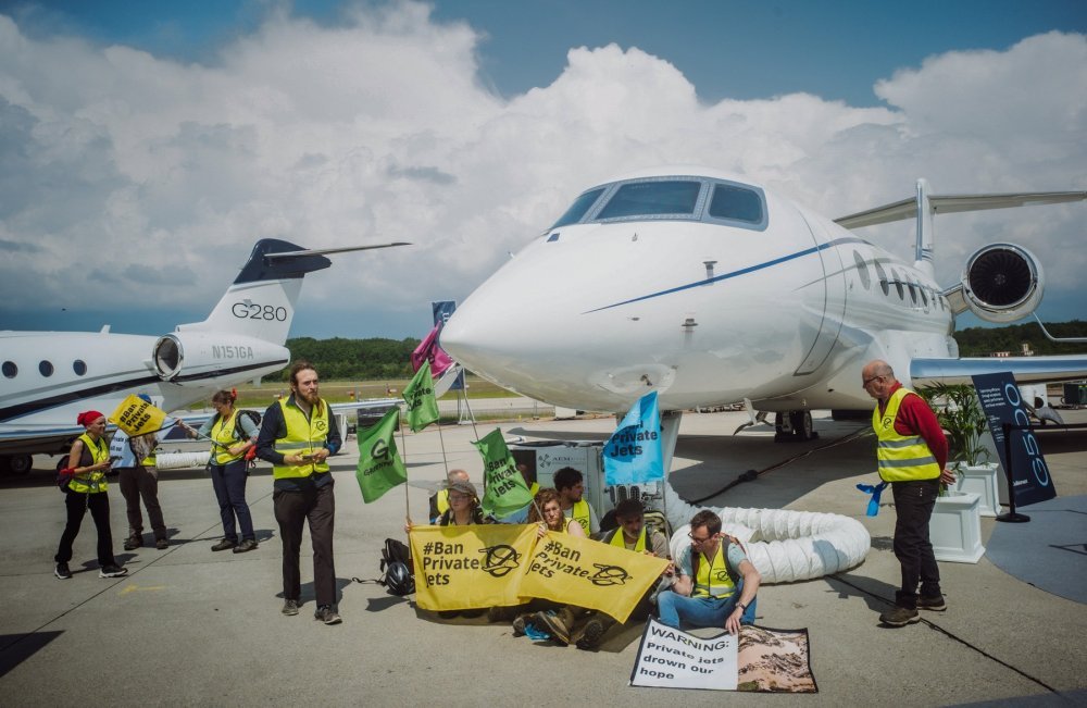Stotinjak aktivista Greenpeacea, Stay Groundeda, Extinction Rebelliona, Scientist Rebelliona i drugih skupina klimatskog pokreta iz 17 zemalja omeli su najveći europski prodajni salon privatnih zrakoplova European Business Aviation Convention & Exhibition (EBACE) u Ženevi, zatraživši zabranu privatnih zrakoplova, ističe se u priopćenju Greenpeacea.